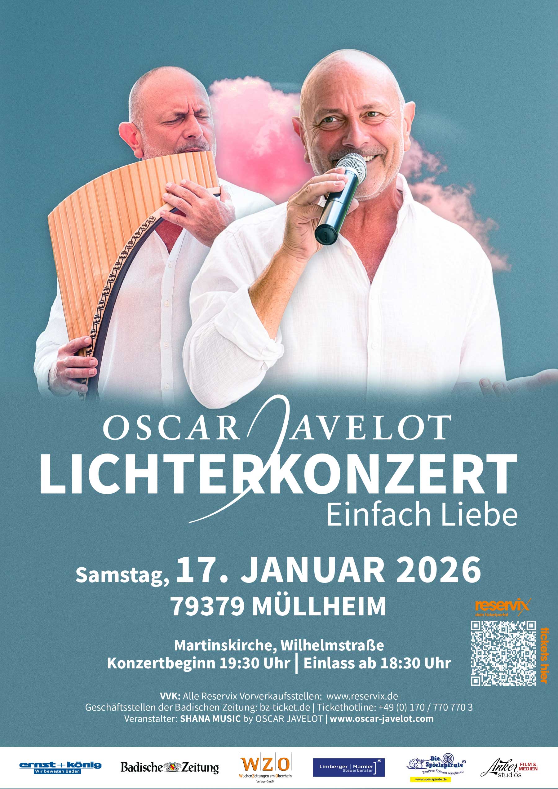 Am Sonnabend, 17. Januar 2026, gastiert der Sänger und Komponist Oscar Javelot mit seinem Lichterkonzert „Einfach Liebe“ in der Martinskirche in Müllheim. Beginn ist um 19.30 Uhr in der Kirche an der Wilhelmstraße 12.