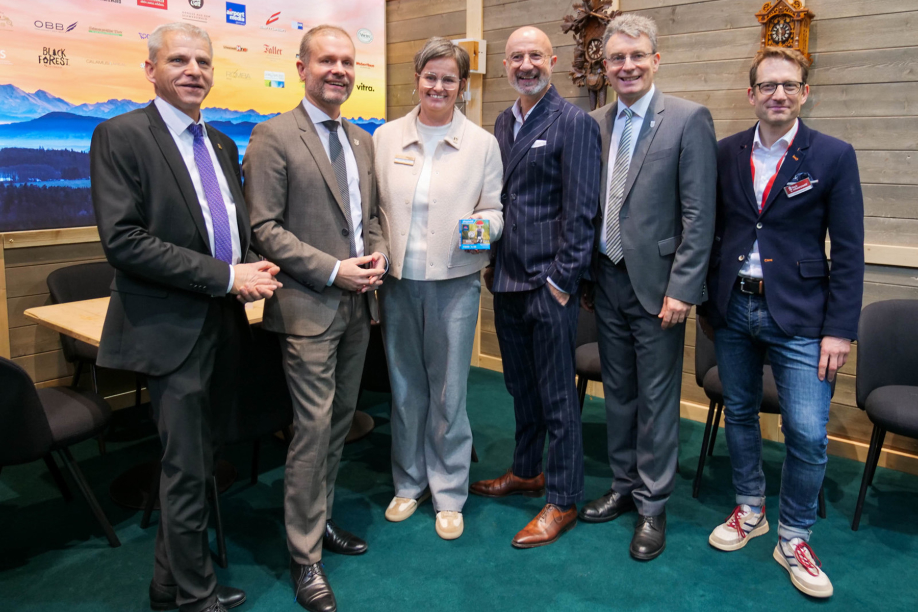 (v.l.n.r.) Tourismusstaatssekretär Dr. Patrick Rapp; Landrat Dr. Christian Ante (Vorsitzender der Gesellschafterversammlung STG); Christina Palma Diaz (Tourismusdirektorin Baiersbronn); Hansjörg Mair (Geschäftsführer STG); Landrat Thorsten Erny (Vorsitzender des Aufsichtsrats STG); Patrick Schreib (Geschäftsführer Hochschwarzwald Tourismus GmbH)